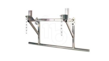 Montagebeugel om de stortkoker te bevestigen aan de steiger of een vergelijkbare plek. Versterkt. Houdt het gewicht van de pijpen die eraan hangen. Gemakkelijk te bevestigen aan de steiger. Voor meer veiligheid en beveiliging raden we aan dit stuk te installeren op tussenliggende secties van de glijkolom. Specifiek, een stuk per iedere 15 meter van de koker