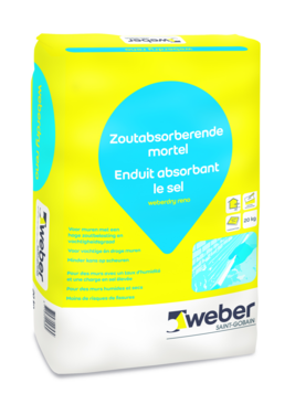 | Commerciële omschrijving | weberdry renovatie is een vezelversterkte renovatie mortel van Weber. De mortel is zeer geschikt voor het renoveren / restaureren van wanden en muren met een hoge vochtigheidsgraad en zoutbelasting. Hoog dampdoorlatend! | |