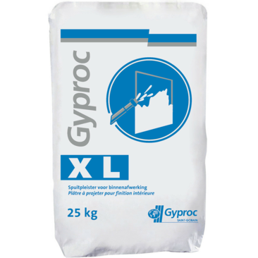 Gyproc X L is een soepel te verwerken stukadoorsgips. Gyproc X L wordt machinaal aangebracht. Het gips is geschikt voor toepassing op binnenmuren en plafonds. Een ideale ondergrond voor alle gangbare afwerksystemen, zoals schilderwerk. De totale verwerkingstijd bedraagt ca. 3 uur en 15 minuten.